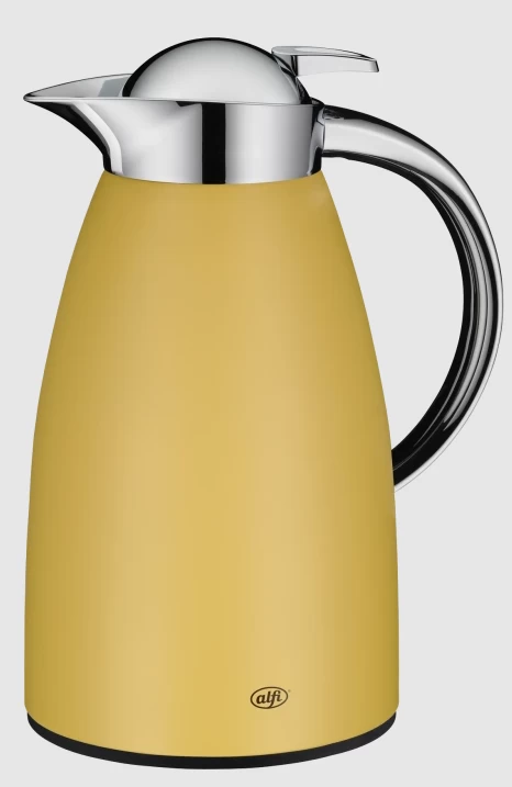 De Alfi Signo thermoskan is dubbelwandig en heeft een inhoud van 1 liter. De buitenzijde van de thermoskan is van geel roestvrij staal en de binnenzijde is van glas. De Alfi thermoskan houdt vloeistof 12 uur warm en 24 uur koud.
