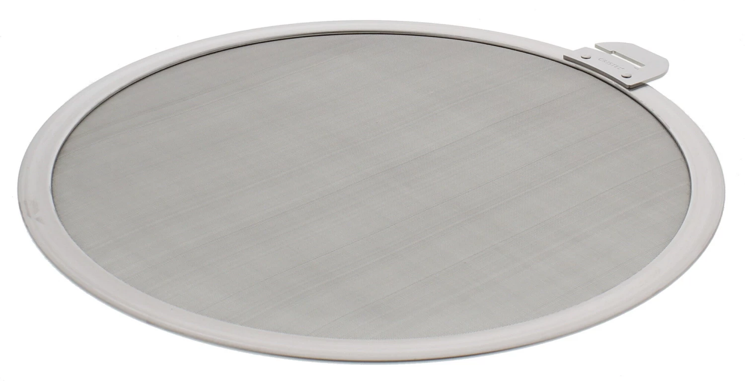 Het spatdeksel van Cristel Strate bestaat uit een roestvrijstalen ring en fijnmazig gaas. Het deksel is 28 cm in diameter en is goed te gebruiken op grote pannen. Gebruik het spatdeksel van Cristal om te voorkomen dat vetspatten buiten de pan komen, terwijl u de inhoud van de pan nog wel kunt laten verdampen. Aan het deksel zit een klein greepje waaraan u een greep of steel kunt bevestigen.