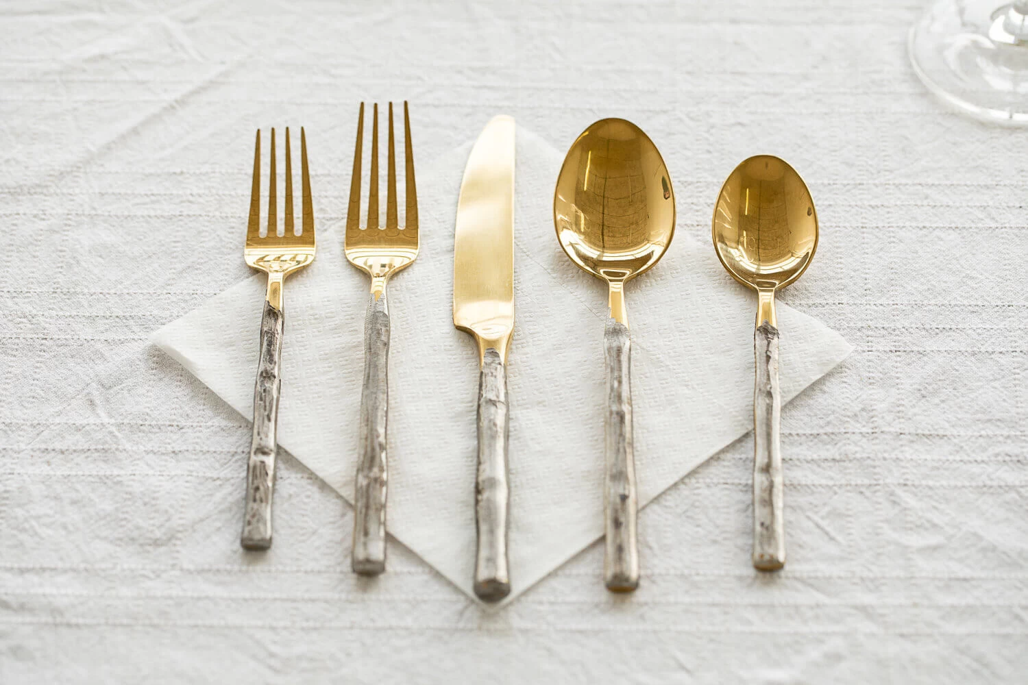 Het Daniël van Dijck bestek is gemaakt van edelstaal en goud. De set van Daniël van Dijck heeft een luxe en speelse uitstraling.