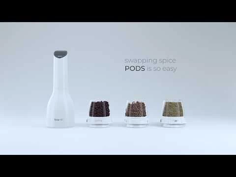 De Finamill All-In-One kruidenmolen is de makkelijkste manier om kruiden van alle soorten en maten te malen. De molen heeft een lengte van 22,7 cm, een diameter van 8,6 cm en komt met twee Pro Plus Pods. Met de Pro Plus Pods maalt u alledaagse en zachtere kruiden als zout, zaden of geroosterde knoflook. Door de Finamill op een pod te drukken, klikt deze vast en kan deze gelijk gebruikt worden voor het malen met maar één druk op de knop. Wanneer de Finamill weer naar beneden gedrukt wordt, laat de pod los en kunt u deze wisselen.