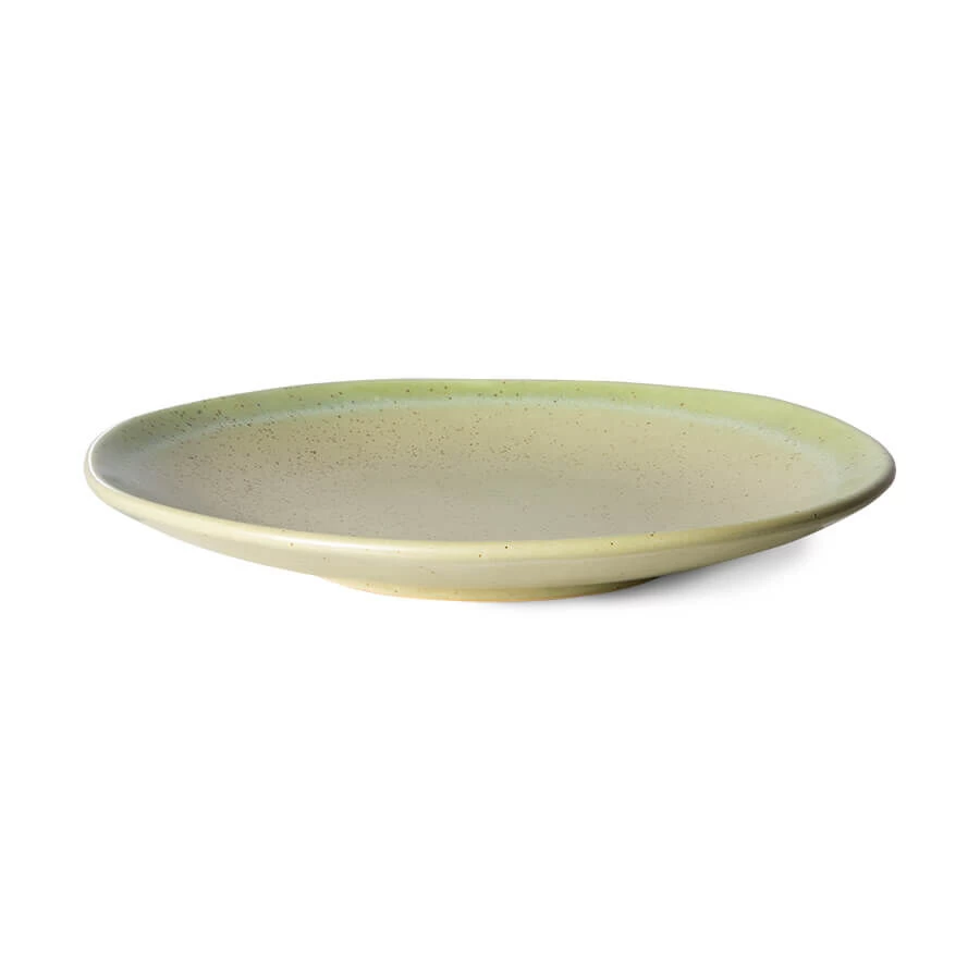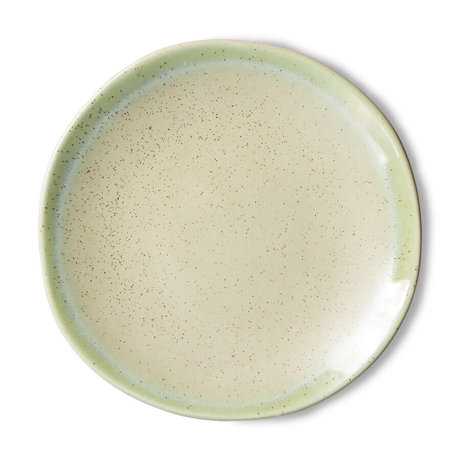 De HK Living 70’s Pistachio sideplate is gemaakt van lichtgroen geglazuurd aardewerk. Het bord met een diameter van 22 cm is handgemaakt en handbeschilderd. Hierdoor heeft elk bord een eigen uniek karakter.