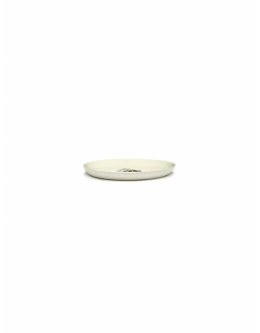 Het Serax Feast by Ottolenghi bord heeft een diameter van 19 cm en is 2 cm hoog. Het aardewerken bord is wit van kleur met een zwarte schildering van een artisjok.